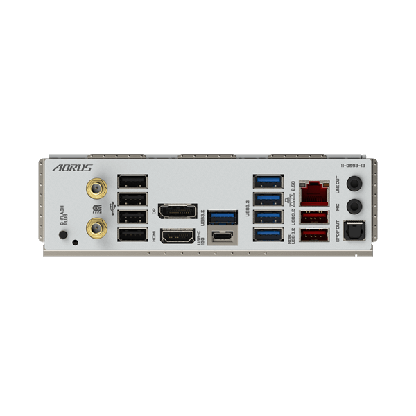 2 x SMA antenna connectors (2T2R)jk 1 x DisplayPort 1 x HDMI port 1 x USB Type-C® port, with USB 3.2 Gen 2 support 2 x USB 3.2 Gen 2 Type-A ports (red) 5 x USB 3.2 Gen 1 ports 4 x USB 2.0/1.1 ports 1 x RJ-45 port 1 x optical S/PDIF Out connector 2 x audio jacks |